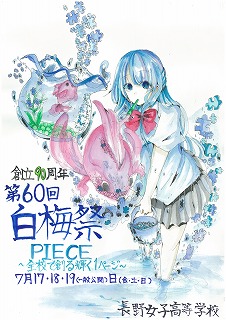 明日,5月21日は長野女子高等学校の創立記念日のため,休校となります。本校は,今年で創立90周年を迎えます。また,7月に行われる白梅祭(文化祭)は今年で60回を迎えるなど節目の年です。写真は,全校生徒が投票し,今年の白梅祭ポスターに選ばれたものです。