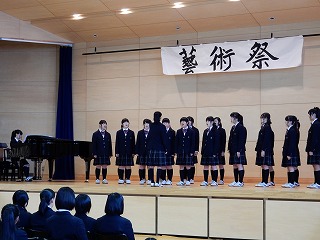 本日は「第2回 芸術祭」が開催されました。午前中は各クラスによる課題曲と自由曲の合唱発表、午後は文化部の成果発表・報告が行われました。アリーナには、この日のため朝や放課後に時間を見つけ練習を重ねてきた生徒たちの歌声や演奏が響き渡りました。クラス・部活それぞれの魅力や意気込みが存分に発揮された発表となりました。(担当:事務)