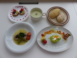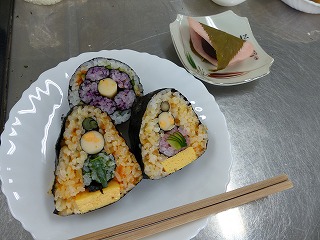 3年生の卒業もいよいよ近づいてきました 。今日最後のフードデザイン授業では、「感謝の献立」というテーマのもと、先生たちへ料理の腕を振るいました。生徒手作りのコース料理に、高校生活の感謝の気持ちが込められていました。また、桃の節句を前に「飾り巻き寿司」にも挑戦し、一足早い春を感じました。(担当:事務)