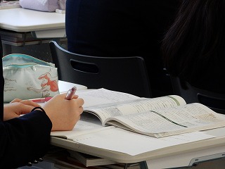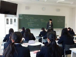 写真は現代社会の授業の様子です。(担当:事務)