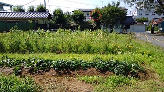 さて、話は少し変わりますが、学校の駐車場入口の樹木にスズメバチの巣があります。(写真下の赤丸)