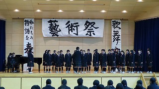 15日に行われた藝術祭が終わった後、3年生の振り返りでは、次のようなことが語られました。「最後の藝術祭でしたが、みんなと一緒に歌うことができてよかった。」「藝術祭を通して仲間と協力することの大切さや、努力の仕方、前向きに考えようとすることを学んだ。」「3年間の中で、一番団結を感じられることができた。」仲間と創りだす、かけがえの無い瞬間をしっかりと思い出に刻むことができたようです。卒業まであとわずか、全員で行う行事はもうありませんが、一つ一つの思い出をしっかりと次へと繋げていきましょう。(担当:3学年)
