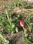 弓道場の白梅が咲き、花壇のチューリップもまさに花開こうとしています。