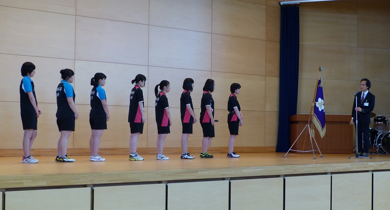本日は今週末の北信高体連総合体育大会に出場するバドミントン部の壮行会がありました。バドミントン部は11日から13日にかけて、東和田の長野運動公園で大会が行われます。吹奏楽部の演奏と全校生徒の拍手の中、入場する選手の皆さんの顔には静かな緊張と闘志が感じられました。日々積み重ねてきた練習の成果を大会で出し切りましょう。(担当:3学年)