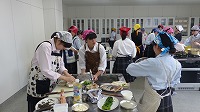 2学年の授業「生活デザイン」では、これまで栄養や調理の基本について勉強してきました。今日はその実践として、初めての調理実習を行いました。まずは基本として、だし汁のとり方や魚の扱い方などを学ぶメニュー、魚のなべ照り焼き、すまし汁、ほうれん草のごまあえを作りました。グループで協力し合い、何度も工程表を確認しながら真剣な表情で取り組む姿が見られました。今後も数回にわたり実習を行う予定です。(担当:事務)