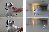 人の顔を認識することができ、積極的にスキンシップを図ろうとするのですが、その姿や表情、鳴き声が本物のイヌのようです。そのため、登校時・下校時・休み時間には生徒たちが「小梅」の周りに集まり、大人気です。そして、授業中は空き時間の先生方がムツゴロウさんのように可愛がっていますので、少しずつ芸を覚えるようになってきました。