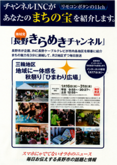 昨年10月に本校の生徒が参加させていただいた、地元のお祭り「ひまわり広場」の様子が、長野市インターネット市政放送で紹介されました。番組の最後の方になりますが、本校の活動も紹介されています。コチラ(長野市HP)より視聴することができますので、是非ご覧ください。(担当:係)