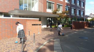 寒露を過ぎ、校舎の窓から見える木々の葉は、赤や黄色に色を変え、本格的な秋の訪れを感じる頃となりました。紅葉した葉は少しずつ落ち始めています。登校後、環境委員会の生徒や美化係を中心に、校門周辺や駐車場の落葉掃きをしています。慌しい朝の時間ですが、お互いに協力しながら活動を行っています。学校生活を通して行う様々な奉仕活動は、社会人となり、地域社会の一員として歩んでいくための基礎となります。(担当:3学年)