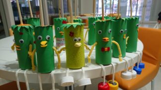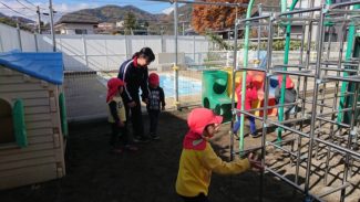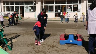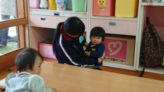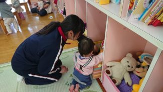 3年生活文化コース、家庭科の選択授業「子どもの発達と保育」では、第2回目の保育園実習を行いました。前回と担当するクラスを替えて、子どもの発達過程について理解を深めました。0歳児クラスを担当した生徒たちは、実習が終わる頃には、子どもたちの発する喃語を解読できるようになっていました。前回よりも自分たちから積極的に園児たちに話し掛け、全力で鬼ごっこをして園庭を駆け回り、生徒たちにも自然と笑顔がこぼれていました。身体測定や給食の配膳の手伝いなど、保育士さんの仕事を一部体験させていただきました。写真にあるかわいらしいカッパたちは、生徒たちから子どもたちにプレゼントした、廃材を利用して作った「カッパのパペット」です。(担当:3学年)