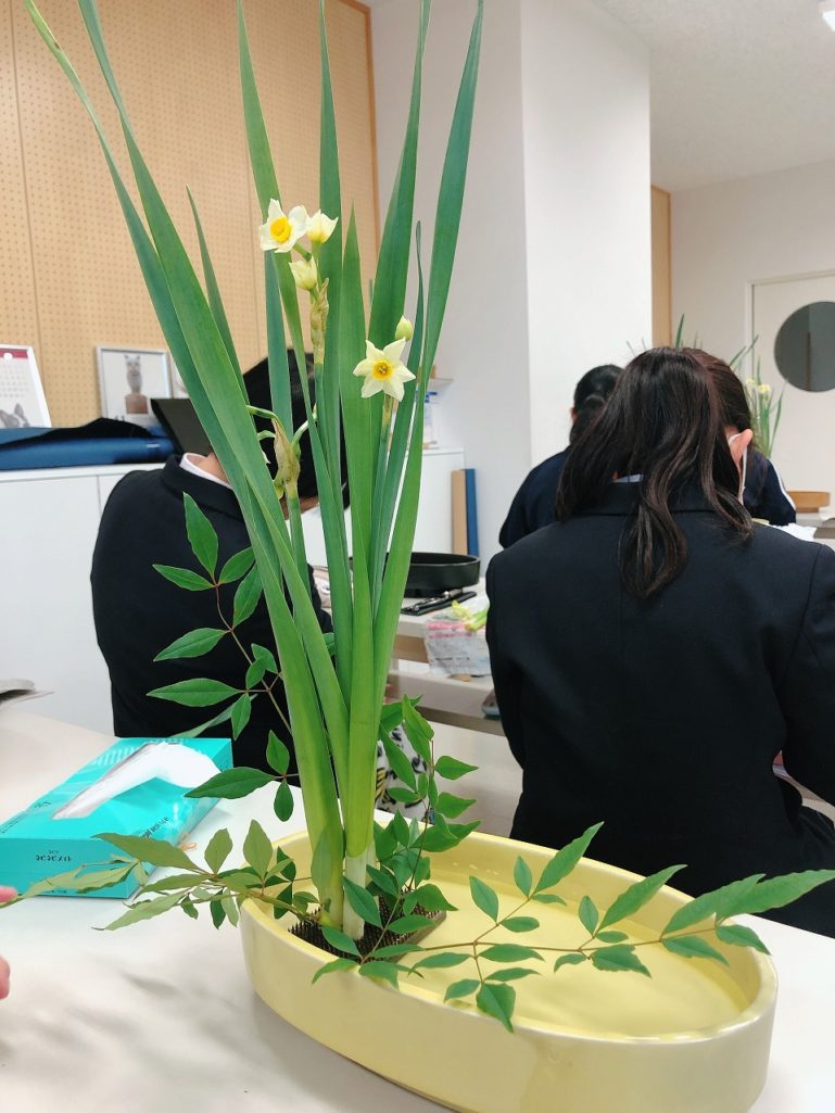 さて、2学年では、華道の時間に水仙を生けました。この水仙は、日本水仙といい、花が小さく香りが良いのが特徴とされています。実際に鼻を近づけてみると、フワッとした優しい香りがスーッと体の中に入ってくるようです。