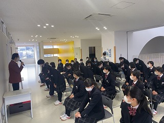 今年度はコロナの影響で、卒業式本番には、在校生は出席しないのですが、卒業式の雰囲気を感じるために予行演習までは出席します。お辞儀の練習では、何回も実践的に行い、悪い部分を注意して綺麗な形になるように指導しました。身だしなみは、卒業式などの式典だけではなく、人間として大事なものです。社会人になってしっかりと身だしなみを整えれるように今の内から、身につけておきましょう。