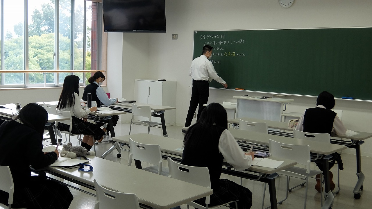 中間テストが終わり、3年生の数学では、新しい単元に入りました。今回からは「データと分析」という内容です。データを集め、そのデータから得られる特徴を分析をするというもので、日常に直結する内容となっています。今後は、自分たちでデータを集め、グラフを作成し、その特徴をつかんで分析していきます。生徒たちは気持ち新たに、集中して授業に取り組んでいました。(担当:3学年)