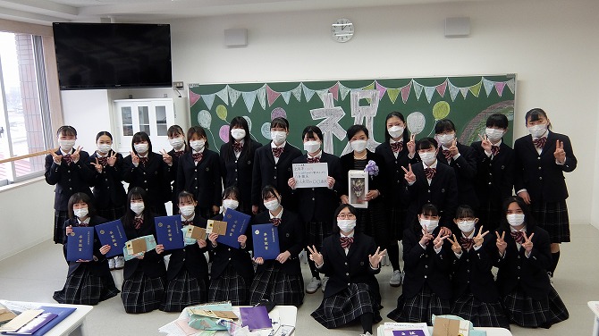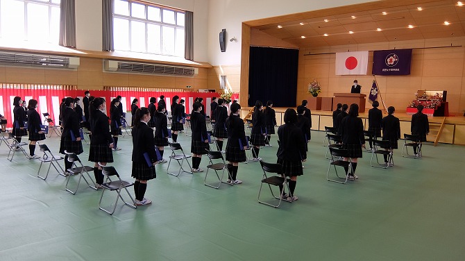本日、令和3年度卒業式が挙行されました。今年度も昨年度と同様、新型コロナウイルス感染症の感染拡大を防ぐため、卒業生・ご家族の方々・職員のみで行われました。卒業生は、先生方や仲間との別れを惜しみながら、晴れやかな笑顔で旅立っていきました。本校で学んだことを活かして、新たな道で前進してほしいです。