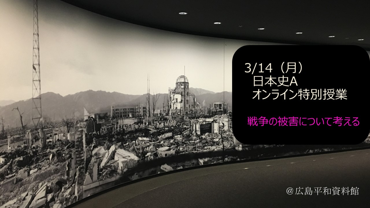 本校は全校120名ほどの小規模校で、さらに少人数のクラス編成(1クラス平均20名程度)を採っているため、いわゆる分散登校やオンライン授業を普段は行わずに済んでいます。ただ、今後の状況を考えると、生徒の皆さんも、私たち教員もオンライン授業に慣れておく必要があります。そのため、今回試験的にオンライン授業を実施することになりました。これまでもオンラインでのホームルーム、学校行事を実施してきましたので、接続や通信状況に大きな問題はありませんでした。ただ、どうしても一方向の授業展開になりがちで、いわゆる双方向授業、教員と生徒のやりとり、生徒同士が学びを深め合う場面をつくることは難しかったように思います。今後どのような授業展開ができるか、普段の対面授業のあり方も問い直しながら考えてみたいと思います。写真は授業で使用したパワーポイントの資料。(担当:係)