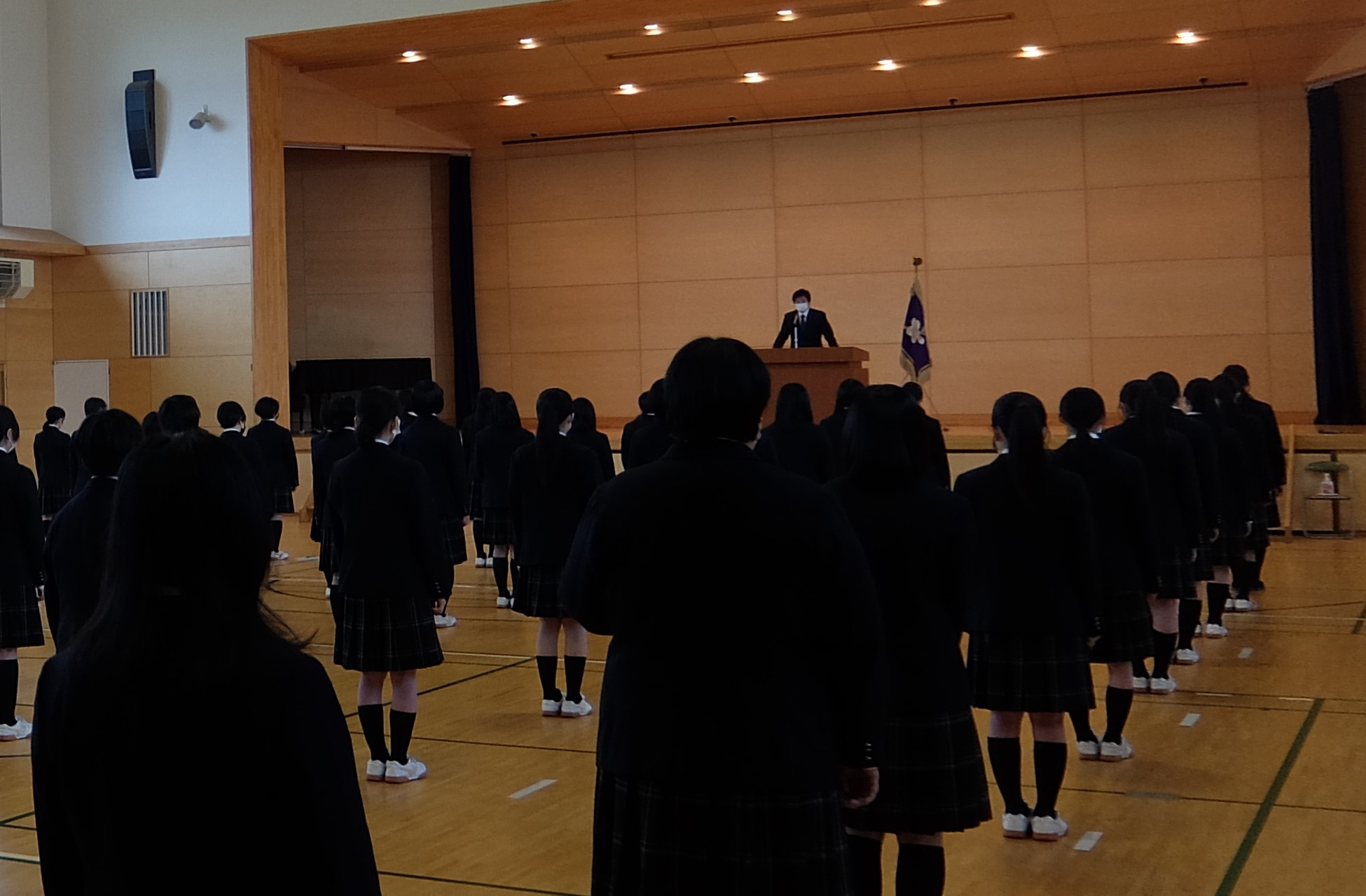 本日、1学期の始業式が行われました。新任の先生をお迎えし、新しいクラスとなり、気持ちも新たに新年度のスタートを切りました。本年度も夢と希望の実現を目指して、努力と挑戦を続けましょう。明日は入学式です。感染症対策のため在校生は式に列席することはできませんが、後輩を導く立場になることを自覚しながら、心を込めて新入生を迎える準備をする姿が見られました。