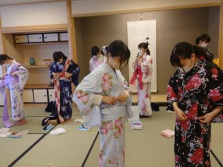 生活文化コース3年生は、「ファッション造形」の授業で浴衣の着付けの仕方を学びました。好みの反物を選び、甚平製作で身につけた和裁の技術を生かして製作した世界に1着の自分だけの浴衣。製作するだけでなく、着たい時に自分で着られる技術も身につけます。7月の白梅祭では、自分で着付けてファッションショーにてお披露目する予定です。(担当:生活文化コース)