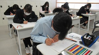 2学期の中間テスト終了後、1,2年生では今年度2回目の進路ガイダンスがZoomで行われました。1年生では、今後進学や就職時に必ず聞かれる自己PRを書くための初めの一歩として、自分を知り、頭を柔らかくして表現力を高める「自己紹介マップ」のワークを行いました。わかっているようでわかっていない自分のぼんやりとした部分が、マップにして整理することではっきりと見えてくることがわかりました。