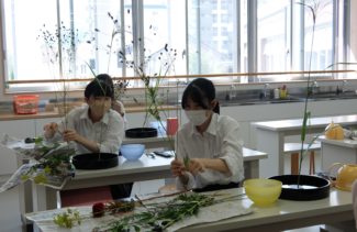 2年生で礼法での学びである、華道と茶道ですが、現在は、A組が茶道であり、B組が華道を学んでおります。10月になり18日からそれぞれ変更になります。華道は、「草月流」、茶道は、「裏千家」の先生方が和の心の「奥ゆき」や「わびさび」などについてもお教えいただいております。お花を活けるときでも、その花の一番美しく見える部分を正面に見せたり、その角度などにも目を向けると同じ1本の花であっても色んな表情が見て取れると思います。「1本の花を見つめる」そんな時間、気持ち、余裕も日常の中に取り入れられるよう願っています。