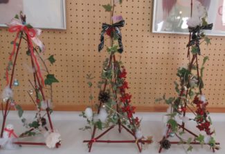 12月になり一段と寒くなりました。今年のChristmas は、日曜日でもあり生徒の皆さんも色々な予定があるかと思います。華道でもクリスマスのお花のアレンジの学習をしました。花材は、サンゴミズキ・アイビー・オーナメント・チェーンボール・リボン・造花・松ぼっくりなどです。リボンや造花は、色を選んで個性を出しました。クリスマスというとリースというイメージがあるかと思いますが、サンゴミズキを利用して「三角錐」に枝を組んでゴムで止め、アイビーやチェーンボールをワイヤーで止めたり、白い緩衝材を雪だるまに見立てたり、ポリエステルの綿を木工用ボンドで雪にしたり、それぞれカスタマイズしました。普段の基本の華道も真剣に学習する姿がありますが、クリスマスというイベントのためにお花や緑を使い、アレンジすることのわくわく感や楽しさが伝わる授業になりました。「サンタさん来てくれるかな…」と呟きながら作製する姿もありました。Christmasまで3週間余り、皆さんのところにもサンタがくるといいですね。