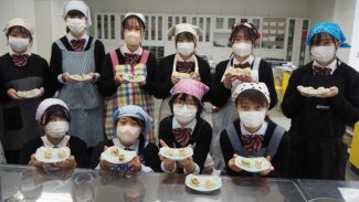 3学年生活文化コース「食文化」の授業では、日本の食文化について、各地の郷土食や銘菓を調べ、調理に取り組んでいます。前回の実習からは、利休饅頭やひき茶饅頭、大福など和菓子も作っています。写真は薯蕷饅頭を織部焼風と、来年の干支であるうさぎに見立てたものです。薯(いも)という字が示すとおり山芋を使った生地を用い、昔は献上する和菓子として使われていたため、上用饅頭という名前でも呼ばれているお菓子です。あらためて、日本の食文化の奥深さを学ぶこともできました。