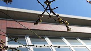 立春を過ぎ、日差しの暖かさに少しずつ春を感じられるようになってきました。冬の寒さに耐えた中庭の梅の木は、陽の光を浴びてつぼみが少しずつ膨らんできています。3年生は卒業に向けて、1・2年生は学年末に向けて締めくくりの時期です。春はすぐそこまで来ています。