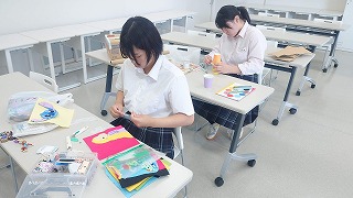 3年選択授業「子どもの発達と保育」では、子どものためのおもちゃの製作をしています。自分で対象年齢を決め、布や段ボール、紙コップなどを組み合わせて、 その時期の発達や興味に合わせたおもちゃを考えました。工夫を凝らしたおもちゃは、後日、保育園実習に持参をし、実際に子どもたちに遊んでもらう予定です。反応が楽しみです。