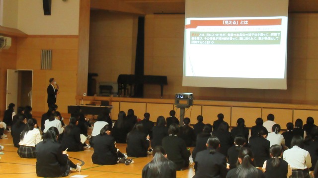 10月6日(金)の5限の時間に、全校生徒に向けてスマートフォンやコンタクトレンズの使用と目の健康について考えることを目的とした眼科医講演会が開かれました。スマートフォンやコンタクトレンズの目にかかる負担や目の構造についてのお話があり、生徒自身、目の健康状態を深く知るための良い機会となりました。