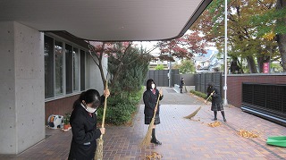 10月末になり朝晩と日中の気温差が広がり、遅れ気味だった紅葉が進んできました。登校時の足元には「落ち葉の絨毯」が広がっています。この時期生徒たちは毎朝交代で落ち葉掃き活動を行っています。朝の慌ただしい時間ですが、学年の枠を超えて協力して活動を行っています。