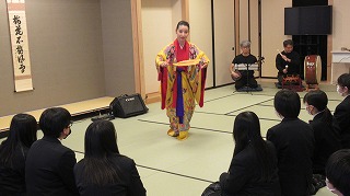 2学年では、4月に行われる修学旅行に向けて事前学習を行っています。先週は沖縄出身の方から沖縄の文化や歴史についてご講演をいただきました。琉球舞踊や三線の演奏を間近で体験し、沖縄についてより深く考えたり、もっと知りたいと生徒たちの気持ちも高まっていました。今後更に学びを深めて、自分たちで修学旅行に彩を加えていきましょう。