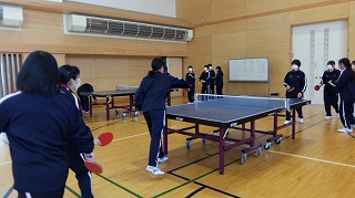 3年生は2クラス合同で体育の授業を行っています。今月は卓球の練習をしています。ダブルスの試合をするための練習に真剣に取り組む姿が見られました。