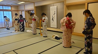 3年生の生活文化コースの生徒が、浴衣の着付けの仕方を学びました。浴衣は、3年生自身が昨年度製作したものです。時間をかけて反物から仕立てた浴衣を自分で着付けられるようになることを、みんなとても楽しみにしていました。始めは四苦八苦する様子もありましたが、繰り返し行ってきれいに仕上げるコツをつかむことができました。浴衣は白梅祭のファッションショーで披露しますが、生徒のみんなは地域の夏祭りに着ていくことも楽しみにしているようです。