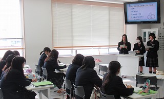 本年度の探究学習は、生徒自身が知りたいことをテーマに、7グループに分かれて調べ、考察してきました。テーマは、日本の食料自給率、子どもの遊びの変化、少子化と働き手の減少などのほか、AI(人工知能)の普及で事務職、サービス業、クリエイターの仕事がそれぞれどうなるか―という、時代を映した内容でした。