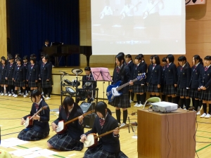 今日は芸術コンクール。午後13時10分からアリーナで行われました。1年生から3年生まで今日のために朝晩練習を重ねてきました。伴奏、指揮、合唱すべて行ったのは生徒たち自身。各学年、クラスが演奏に工夫をこらし歌いました。1年生は吹奏楽、軽音楽、ピアノの伴奏による合唱(途中ソロあり)。2年生は三味線、ベース、バイオリン、ドラム、ピアノによる演奏と合唱。最後のコンクールになる3年生は、思い出の映像を交えて発表しました。先生方、ご両親に日頃の練習の成果をお見せできました!(担当:3学年)