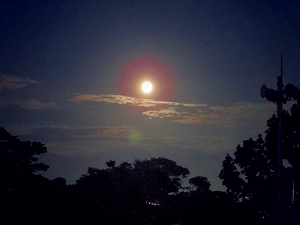 昨日の「今日のナガジョ」でもお伝えしましたが、昨晩はスーパームーンでした。部活を終えて下校の準備を始めた生徒たちが最初に月の出に気づき、窓の外に見える月の大きさに驚き歓声を上げていました。校内からは14日(日)に本校のある三輪地区で開催される「三輪まつり」に参加する、総合文化部吹奏楽班が練習するジブリ映画の楽曲が聴こえて来ます。軽快なリズムに、映画のシーンも思い出した生徒も多かったのではないでしょうか。音楽の力はとても大きなものです。曲を聴きながら、楽しげな気分で、校門周辺では月に向けスマホを掲げる生徒が多く見られました。写真は校門付近から撮影した18時40分の月です。