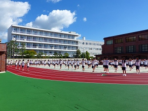 本日はクラスマッチが行われています。種目はバスケットボール、バドミントン、卓球、綱引き、50m走、800mリレーです。初めての試合、先輩の意地、高校生最後のクラスマッチなど、生徒たちそれぞれの意気込みがあるようです。試合前に円陣を組む姿、声を掛け合う姿があちらこちらで見られました。校舎には、大きな声援や一喜一憂する声が響き渡っています。クラス一丸となり、悔いのないよう最後まで頑張ってほしいと思います。(担当:事務)