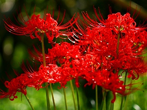 明日は秋分の日です。昼と夜の長さがほぼ同じになる日(昼の方が少しだけ長いそうです。)で、これより少しずつ夜が長くなっていきます。一日が24時間なのは、紀元前1300年頃のエジプトの日時計に遡り、地面にさした棒の影が示す方向や長さで時間を知り、太陽が沈むと夜空に瞬く星を数え夜の時間を計り、こうして昼夜を12個づつに分割したのだそうです。また1時間が60分で、1分が60秒なのは紀元前300年頃のバビロニアの計算方法によるのだとか。自然科学は世界共通なのに、言語はバラバラ・・・文化は人間が作ったものだからなのでしょうか。ところで、秋分の日はお彼岸の中日でもあり、「祖先を敬い、亡くなった人々をしのぶ日」として、国民の祝日に制定されたそうです。この日にお墓参りに行かれる方も多いと思います。彼岸というのは日本独自のもので仏教の国インドや中国にもないそうで、「お彼岸は、自分を見つめ直し、先祖への報恩感謝をすることにより、より豊かな心を持つための、人格形成期間のようなもの」なのだそうです。これも日本の文化なのでしょうか。お墓参りに行って牡丹もちなどを食べるだけ、と思っているとバチがあたりそうです。明日は古代に浪漫を馳せながらじっくりと自分と向き合ってみる日にできるといいですね、感謝の気持ちを抱きつつ。(写真は彼岸花。幽霊花、地獄花などと呼ばれたりもしますが、やはり曼珠沙華…天界に咲く花、という名前が一番相応しいような…。「曼珠沙華」という歌もあります。)