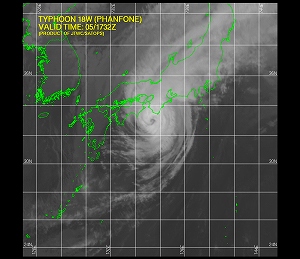 台風18号は、8時過ぎに静岡県浜松市付近に上陸した模様です。これから昼前にかけて県内に最も接近する見込みで、長野市、千曲市などには長野地方気象台より大雨警報が出されています。併せて土砂災害などに警戒するよう呼びかけているので注意しましょう。長野市内も雨が降り続いており、明日朝までの24時間に、北部で120ミリ、中部で100ミリの降雨量が予想されています。この影響で、運転を見合わせているJRの特急電車などがあるようですが、新幹線としなの鉄道、長野電鉄、上田電鉄などは、始発から平常通り運転となっています。また、小中学校や一部高校でも休校や登校時間を遅らせるなどの対応がとられています。本校では現時点(10:00)において本日を含む明日以降、休校や登下校の時間変更など特別日課の予定はありませんが、変更が生じた場合はホームページ及びメッセージ一斉配信システムによりご連絡しますので、確認をお願い致します。引き続き台風情報に注意してください。(写真は朝日新聞ウェブサイトほか JTWC/アメリカ・ハワイの米軍合同台風警報センターなどによります。担当:教務)