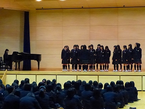 <写真は、11月19日(水)に行われる芸術祭の1年生と2年生合同練習発表会の風景です。>