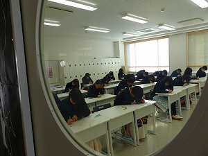 3年生の学年末試験が本日より始まりました。3年生の廊下の壁面には来月の予餞会までのカウントダウンの日数が掲示されていますが、100日をきった頃からの日々の過ぎ方が大変早く感じます。いよいよ10日を切りました。1、2年生も今年度の残り少ない日々と課題、学年末試験を意識し学習等に取り組んでいる生徒も多いように見受けられます。4月に修学旅行を控えた2年生は、3学期より火曜日の朝学習の時間に事前学習として英会話やアメリカの地理の動画視聴をしており、今後も4月まで継続していきます。またグループ毎に担当ページの、しおりの作成をしています。第1稿で内容豊かなものが出来上がっているグループもあり完成が楽しみです。写真は3年生制作の壁面アートです。(担当:2学年)