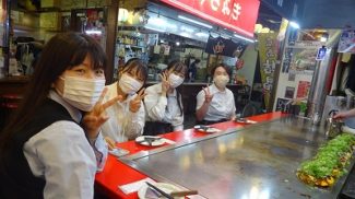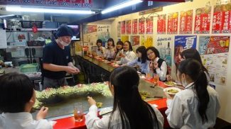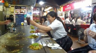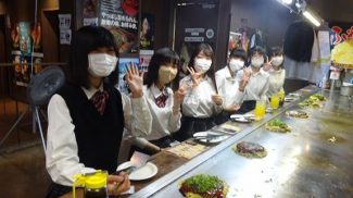 フェリーで広島市内へ戻り、昼食は広島風お好み焼きです。 食べ歩き直後でも、まだまだ食べられます。本場のお店の味に加え、雰囲気も楽しむことができました。