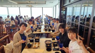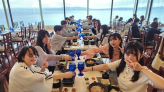 古宇利島オーシャンタワーにて昼食をいただきました。私はおそらく沖縄には20回程は来ていると思いますが、オーシャンタワーは初めてでした。そもそも古宇利島にあまりご縁がなかったように思います。修学旅行でも珍しいチョイスかなと思います。しかしながら、北部よりの美ら海水族館の後にどこへ行くか問題はわりと沖縄旅行あるあるだと思いますので、行程としては個性を出せる部分になります。眺望がたいへんよいですね。
