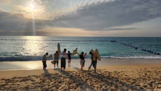 最後の宿泊先であるムーンビーチホテルにやってきました。さっそく、プライベートビーチへ。この写真、凄くないですか。こういう一目見ただけで、このときの感動や感情がよみがえってくるであろう写真、一生色褪せることのない写真って、人生で一体何枚撮れるんでしょう?たぶん、すごいの撮っちゃいましたよね。皆さんが一生で何度かは見返すであろう写真、撮っちゃいましたよね。