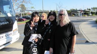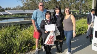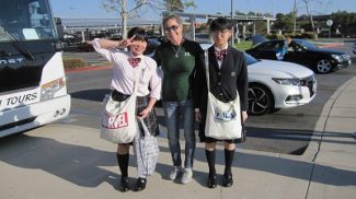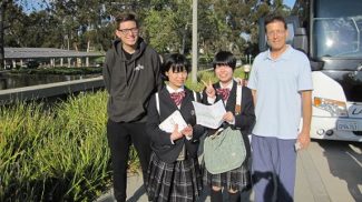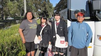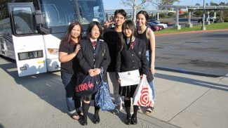 事前に準備をしていった、自分たちのネームカードを持ち、ホストファミリーと対面しました。2泊3日どうぞよろしくお願いします!