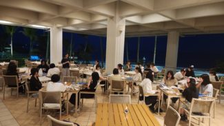 さぁ、いよいよ最終日です!体調不良者もなく、みんな揃って朝食をいただきました。これからバスで、那覇空港に向かいマースゥ! |