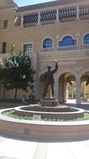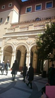 カルフォルニアサイエンスセンターを後にした一行は歩いて10分程度のところ(ホテルの目の前)にある南カルフォルニア大学(USC)へ向かいました。南カルフォルニア大学はあの映画監督ジョージ・ルーカスさんやスティーブン・スピルバーグさんを輩出した映画学部があることで有名です(昨日、スピルバーグ監督の新作映画『レディ・プレーヤー・1』が公開されましたね)。